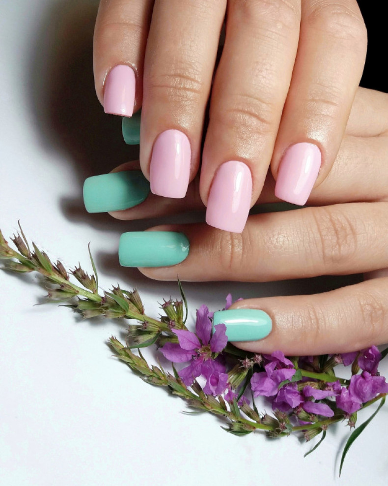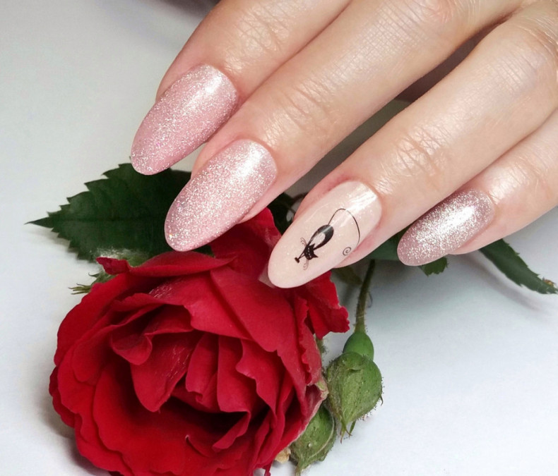 однотонный маникюр, маникюр лето, шикарный маникюр, маникюр сердечки, маникюр с блестками