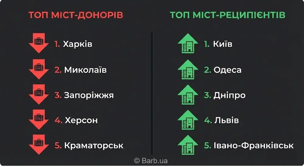 - Топ-реципиент: Киев — абсолютный лидер по приему бьюти-мигрантов (168 новых анкет).