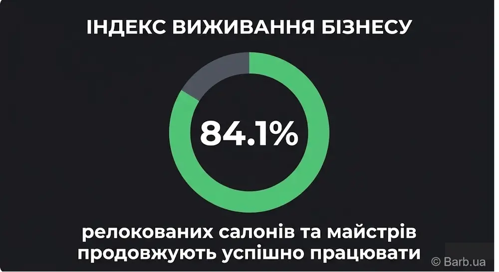 Самым большим открытием исследования стал «Индекс выживаемости» украинского бьюти-бизнеса. Из всех специалистов и салонов, переехавших в другие города с 2022 года, 84,1% (533 анкеты) остаются активными и продолжают принимать клиентов по состоянию на начало 2026 года.