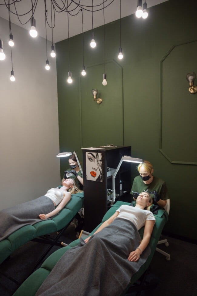 Что предлагают: маникюр, педикюр, наращивание ногтей, перманентный макияж (брови, губы, глаза), татуировка и удаление татуажа, микроблейдинг, ламинирование ресниц и бровей, наращивание ресниц (2D-8D), мужская и женская депиляция (ваксинг, шугаринг), массажи, прически, афрокосы, кератин, брейды, наращивание волос, а также курсы для мастеров.