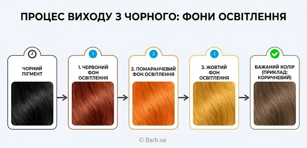 Не паниковать – это нормальный процесс, который называется "фон освещения". После удаления черного пигмента всегда открывается красный или медно-рыжий подтон. Это не конечный результат, а только "чистое полотно" для дальнейшей работы. Этот цвет нужно нейтрализовать с помощью профессионального тонирования с использованием пепельных или фиолетовых микстонов, которое превратит рыжий в благородный коричневый или русый оттенок.