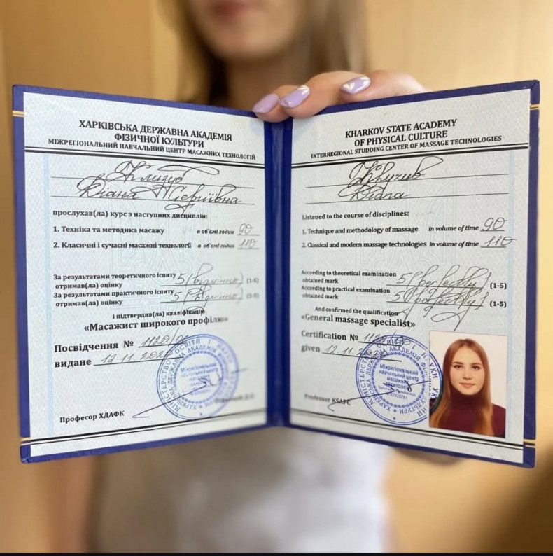 Основная специальность: Массажист