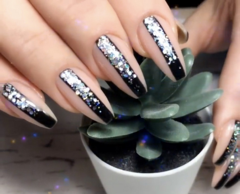 маникюр весна 2024, черный маникюр, маникюр со стемпингом, маникюр фото новинки, маникюр с одуванчиками