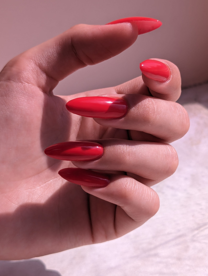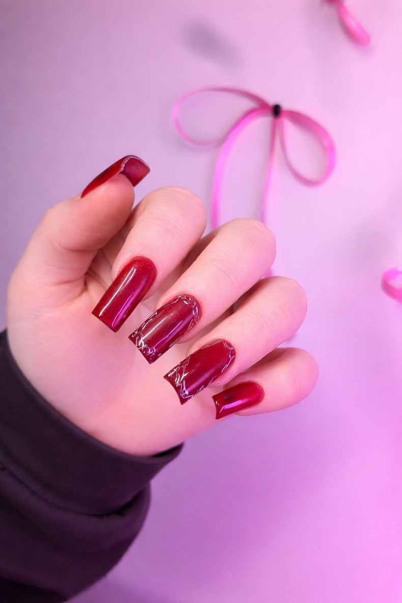 красный маникюр, молодежный маникюр, оливковый маникюр, маникюр на овальные ногти, сногсшибательный маникюр