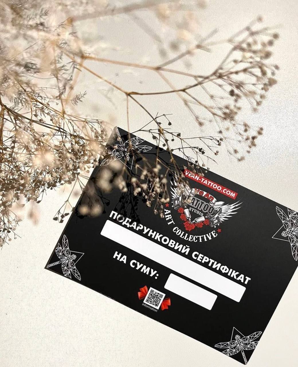 Ви можете придбати подарунковий сертифікат на всі види наших послуг. Наші пріорітети: - термін дії один рік - можливість придбати сертифікат на будь яку суму - можливість використати сертифікат по всій території України