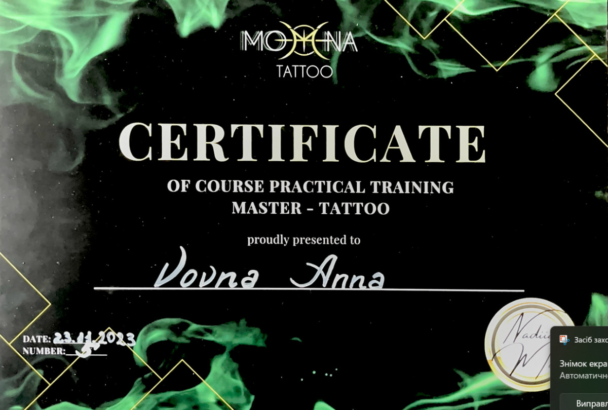 Супер, рекомендую салон. Зокрема, хочу подякуювати Вікторії. Круто зробила тату