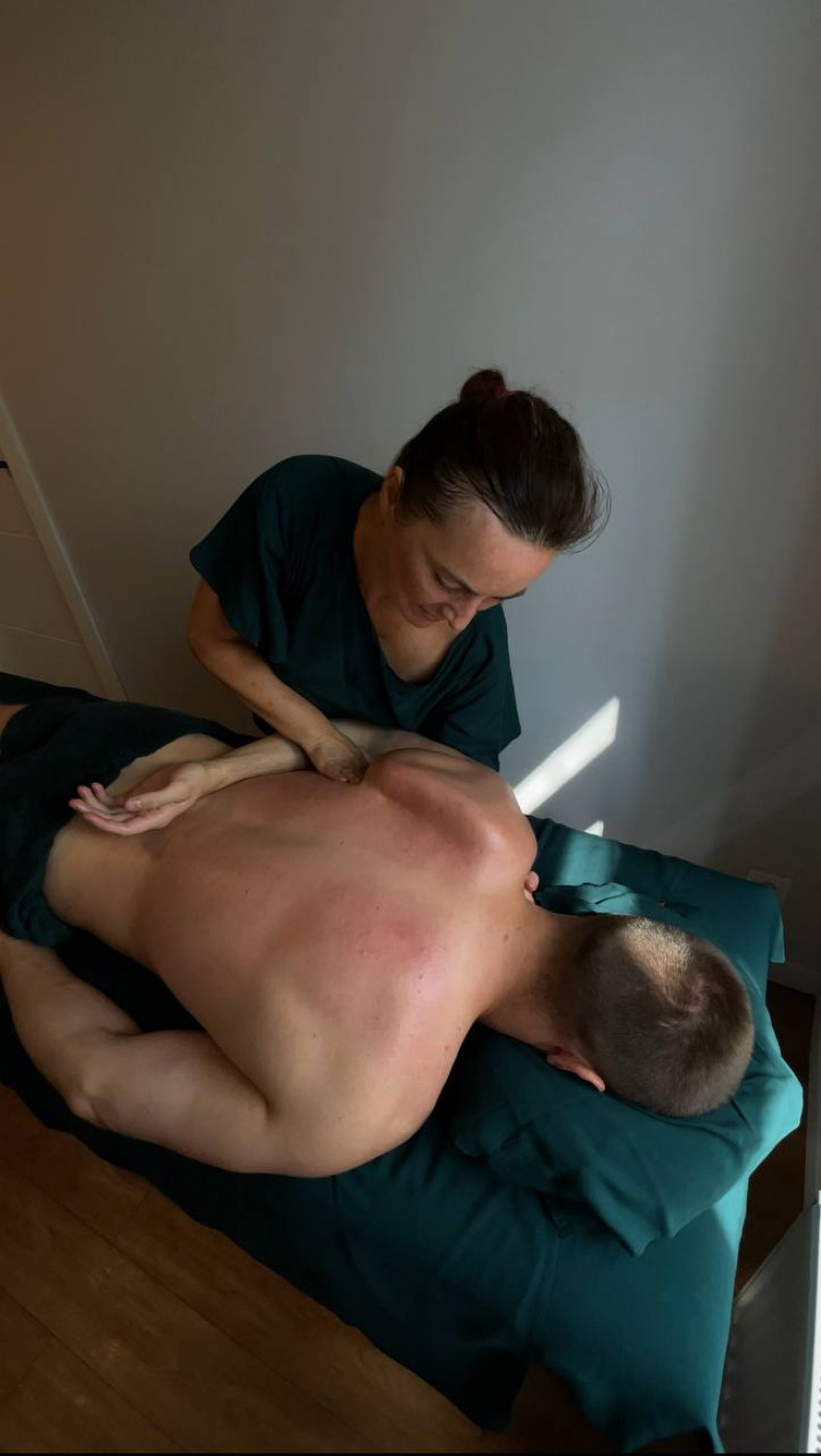 Спортивний масаж - це про глибоке пропрацювання тіла. Цей вид масажу допомагає позбутися зажимів і забитих м'язів. Після масажу крепатура швидше проходить і тіло відновлюється за лічені години. Це мастхев для кожного спортсмена або ж людини з важкою фізичною роботою.