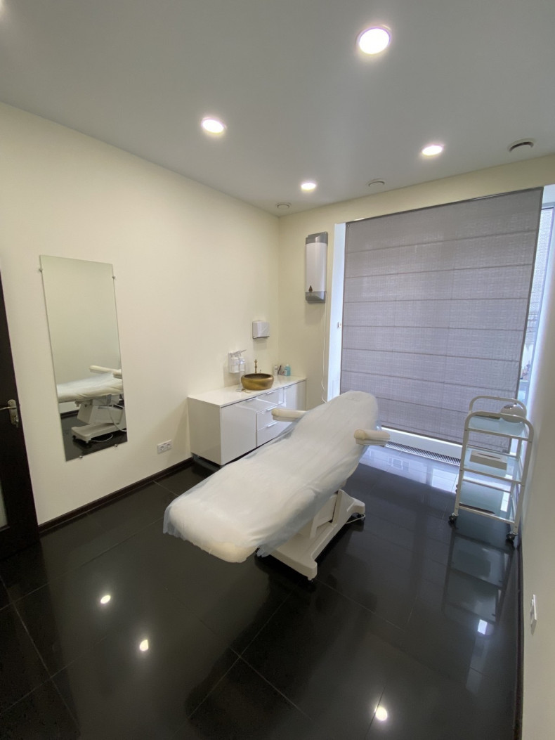 Здається косметологічний кабинет з кушеткою та необхідними меблями для роботи косметолога.