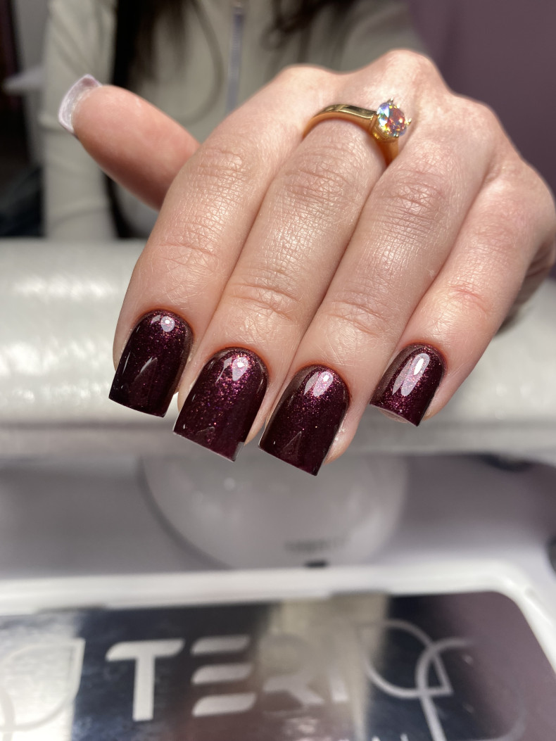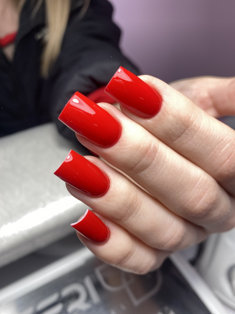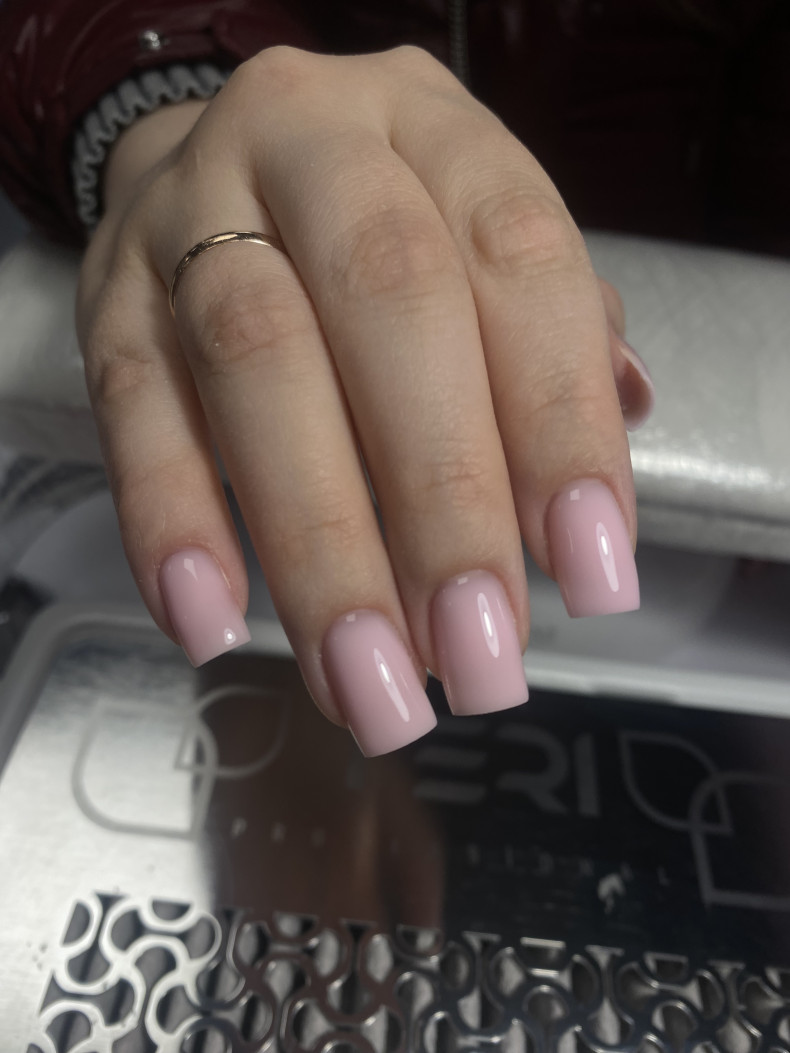 Снятие, маникюр комби, укрепление гелем, покрытие однотонное.