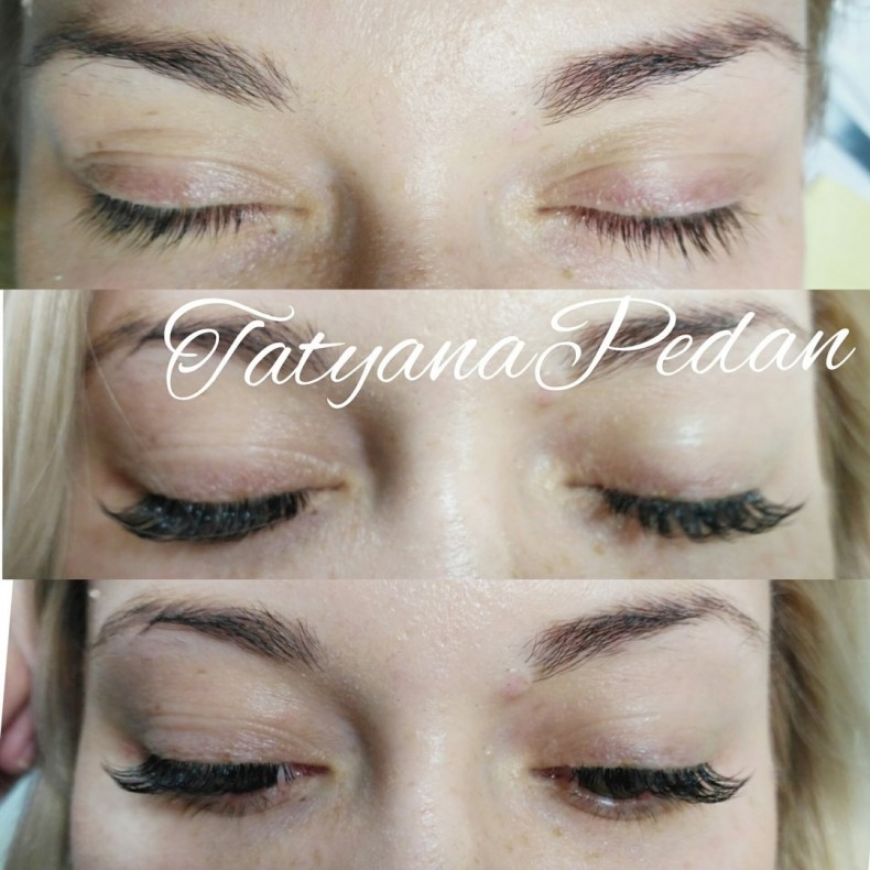 Наращивание ресниц: классическое и объемное; Ламинирование ресниц; Моделирование и коррекция бровей; Покраска бровей хной и краской; Тридинг лица.