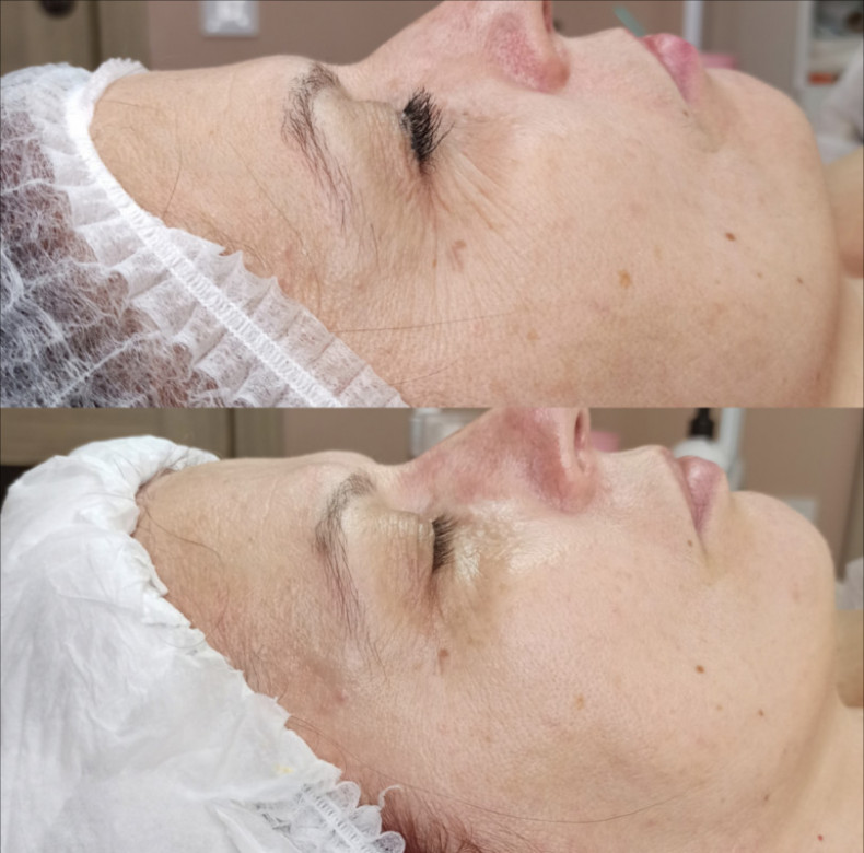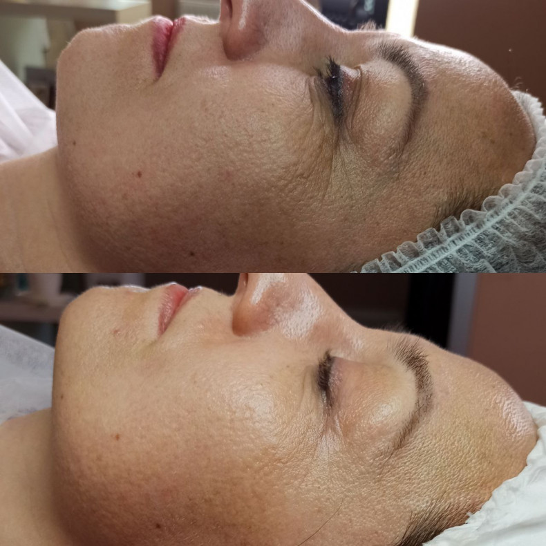 За допомогою апарату Плазма Скін і спеціальної насадки проводиться процедура плазмового душу. На ній формується «спеціальний ореол» плазми, яка впливає на шар епідермісу не травмуючи його. Безболісна і навіть приємна процедура омолодження. Кінцевий результат після курсу в 10-15 сеансів. Тримається 6-8 місяців