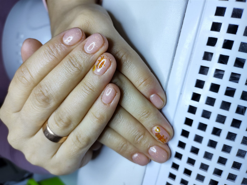 коралловый маникюр, маникюр с точками, маникюр с рисунком, нежный маникюр, молочный маникюр
