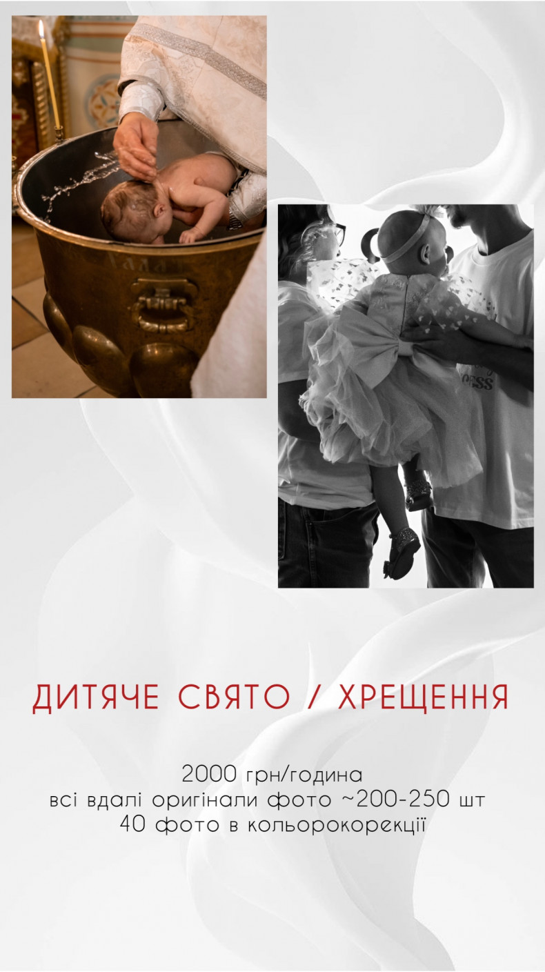| Фотосессия крестин | 2000 грн. / 60 мин |