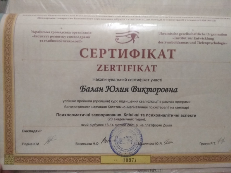 Меня зовут Юлия, я предоставляю услуги психолога, психолога по методу символдрамы, психолог по методу "Инициционная терапия". Имею высшее образования по специальности "Психолог". Прохожу личную терапию (имею на данном этапе около 100 часов), регулярно прохожу супервизионные группы, прошла курс " Операциональная психодинамическая диагностика (OPD)".