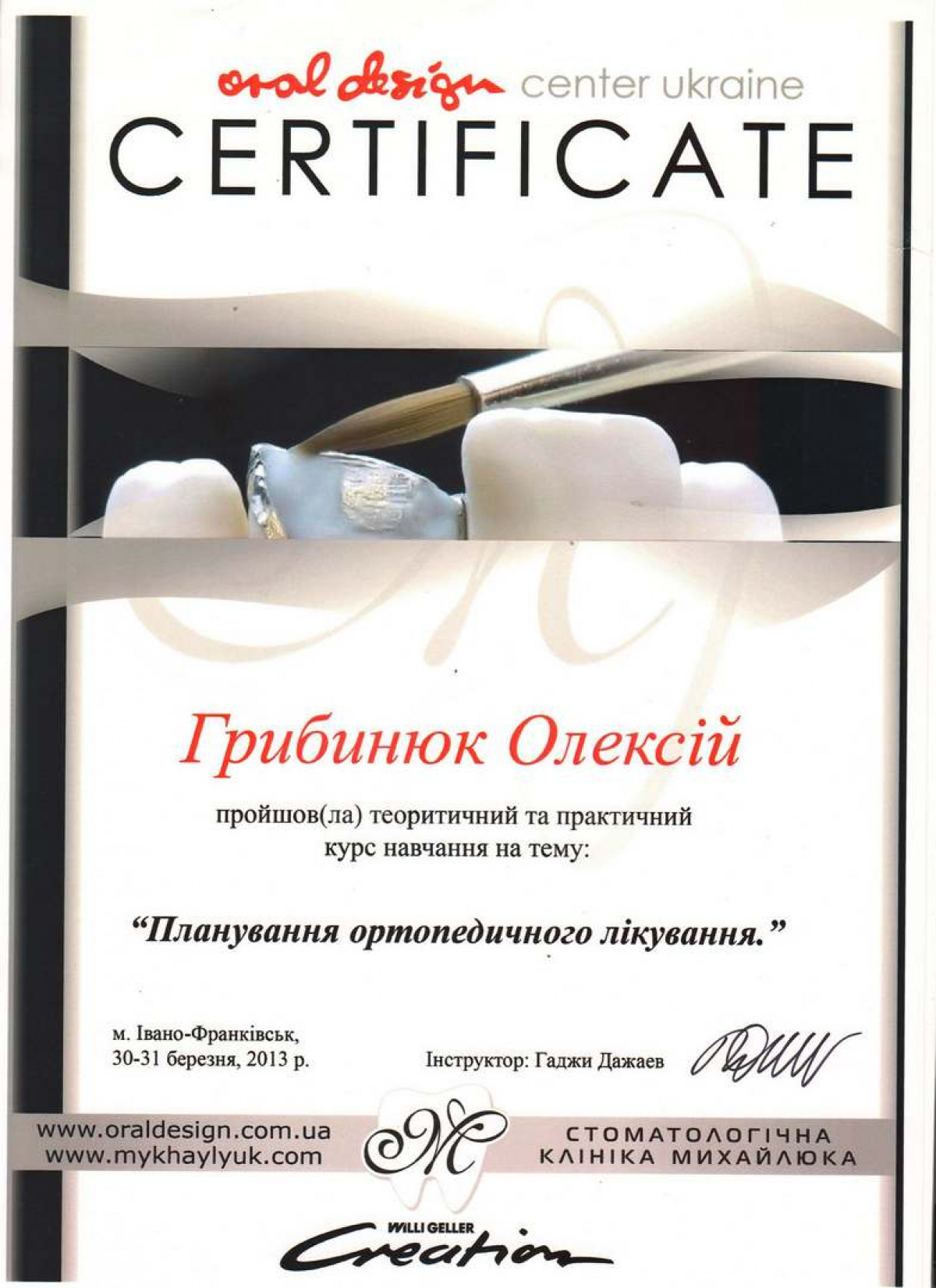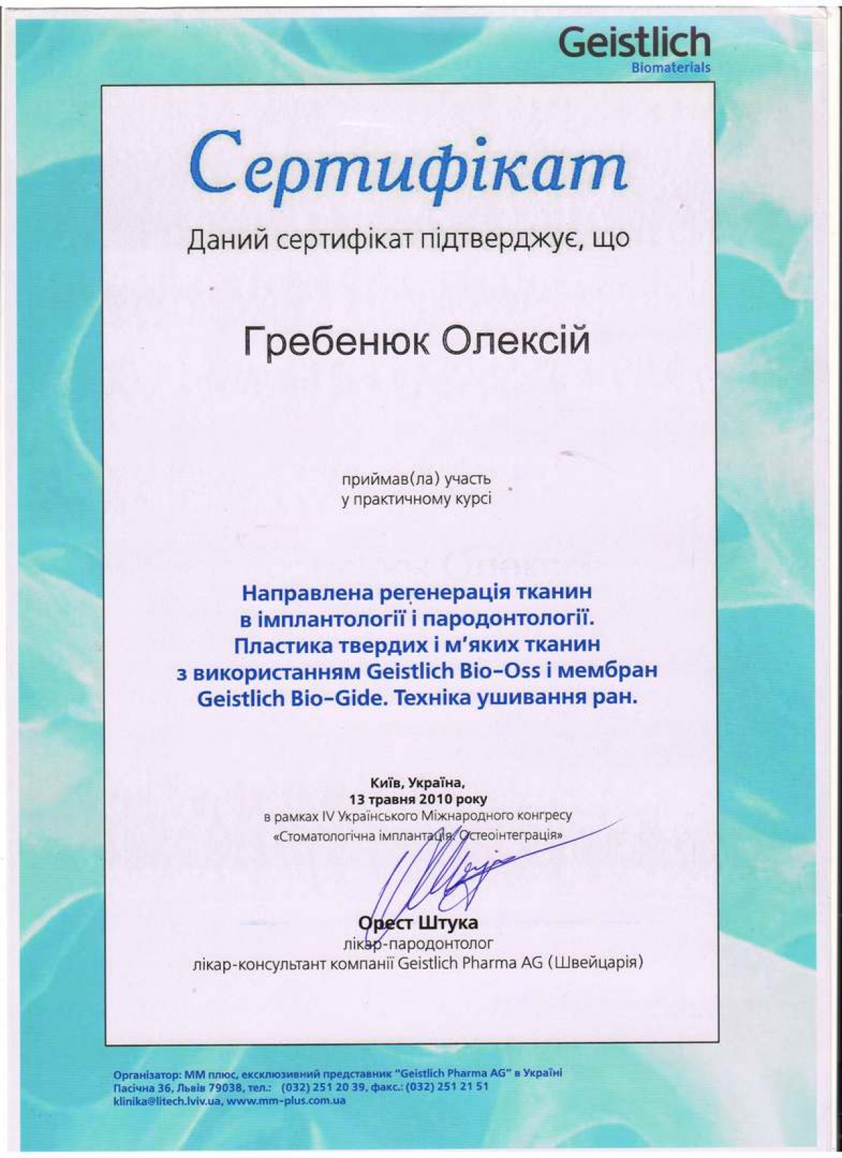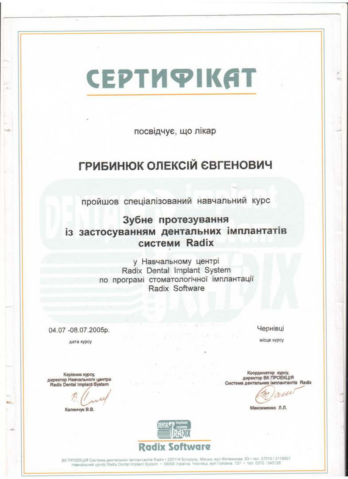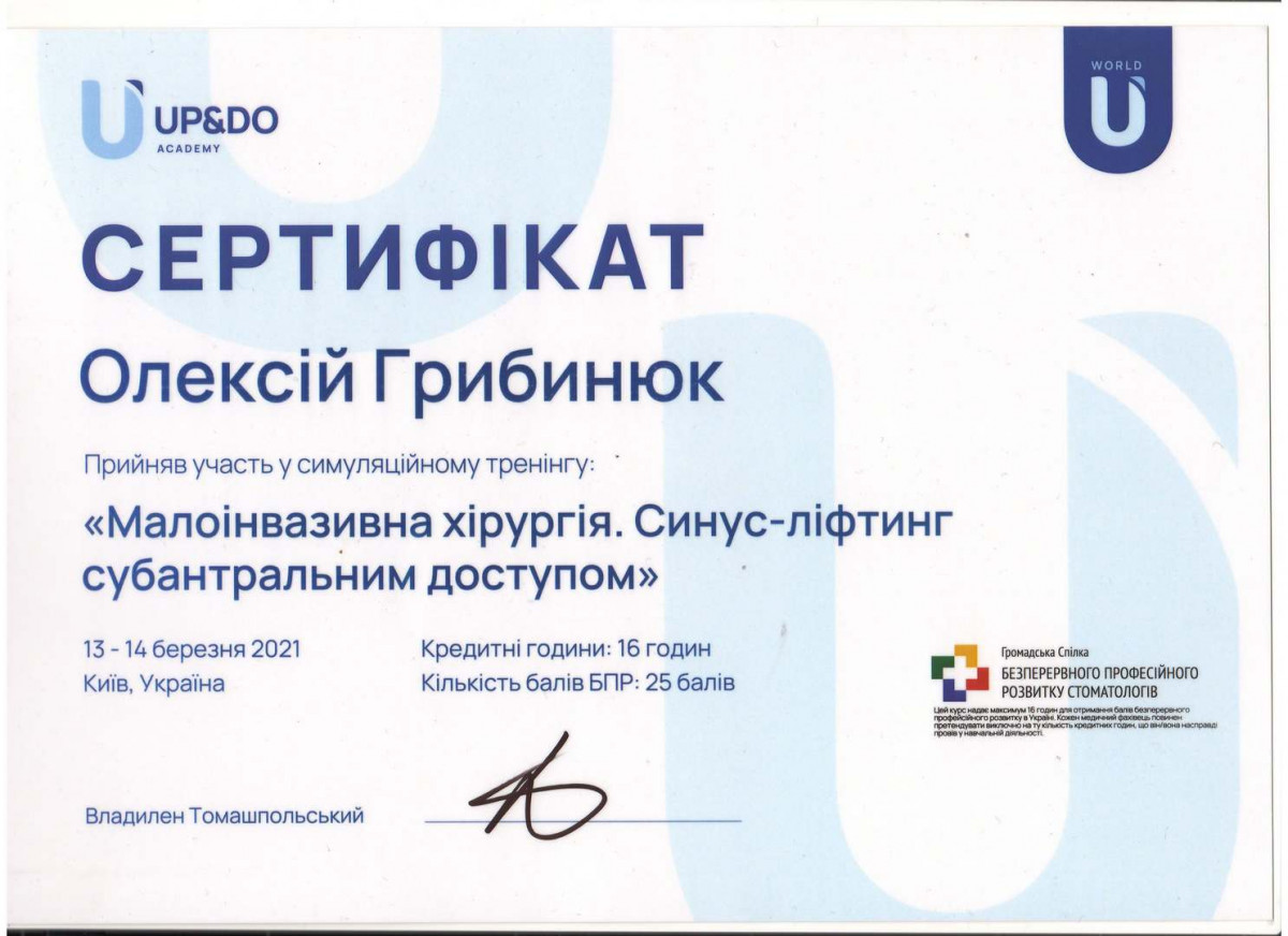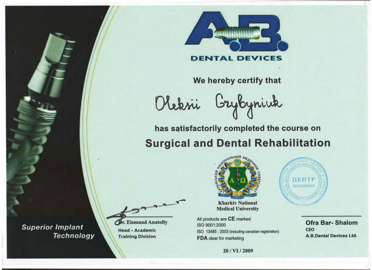 Специалист в дентальной имплантации и костной пластике. Член международной команды имплантологов (ITI). Стоматолог-хирург высшей категории, ортопед. Основатель сети стоматологий Verno (Харьков).