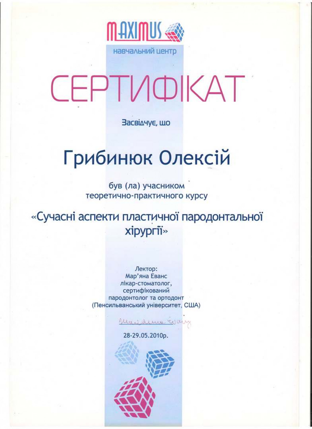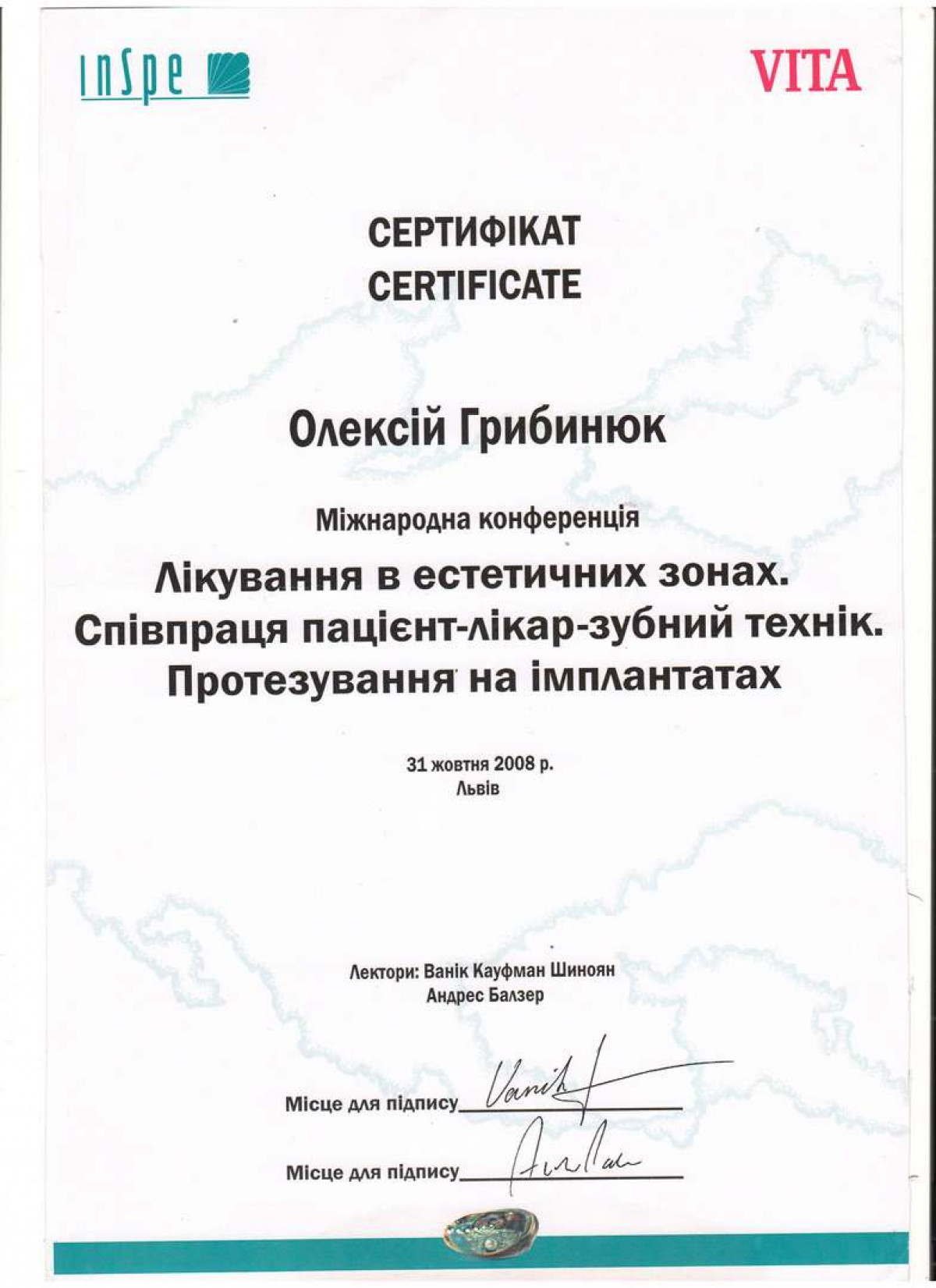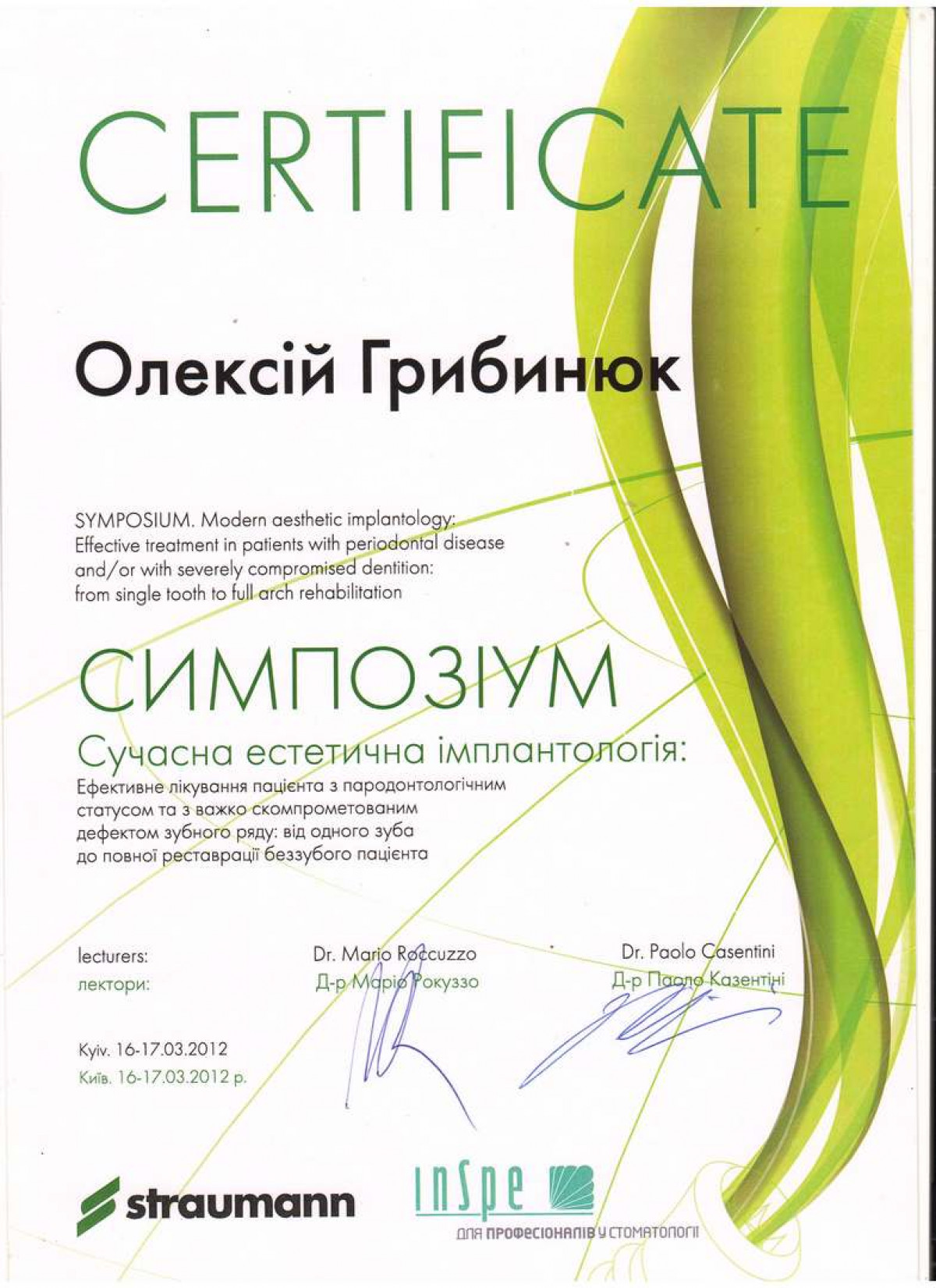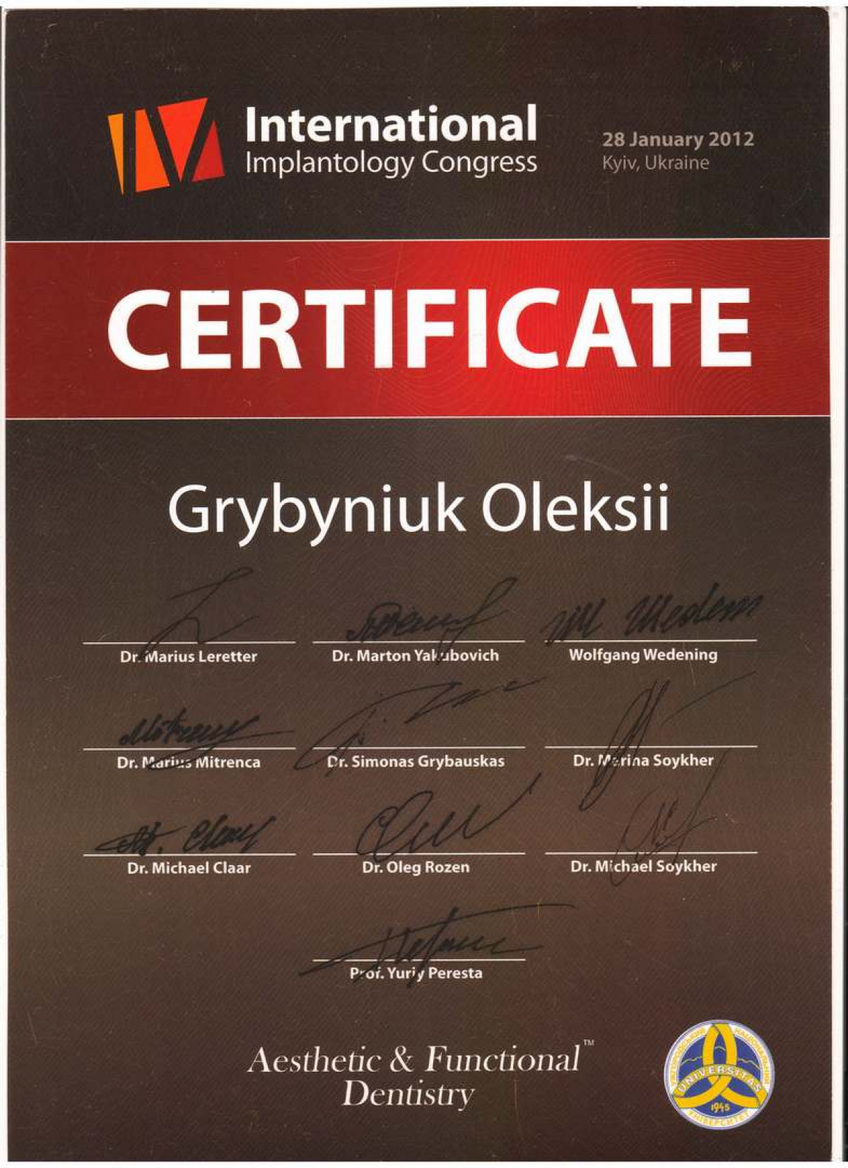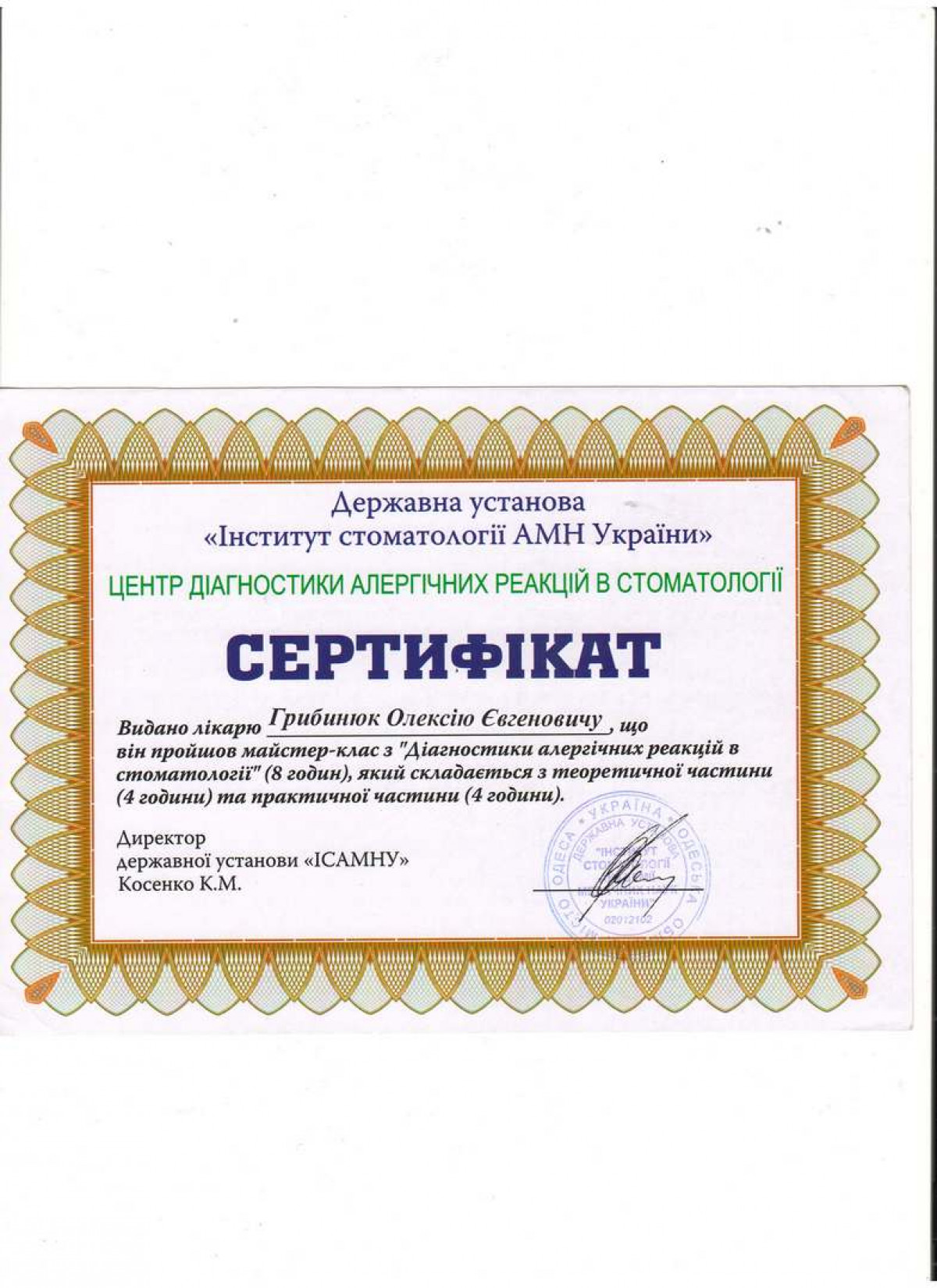 Специалист в дентальной имплантации и костной пластике. Член международной команды имплантологов (ITI). Стоматолог-хирург высшей категории, ортопед. Основатель сети стоматологий Verno (Харьков).