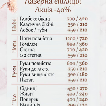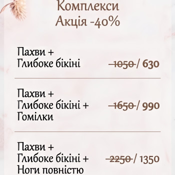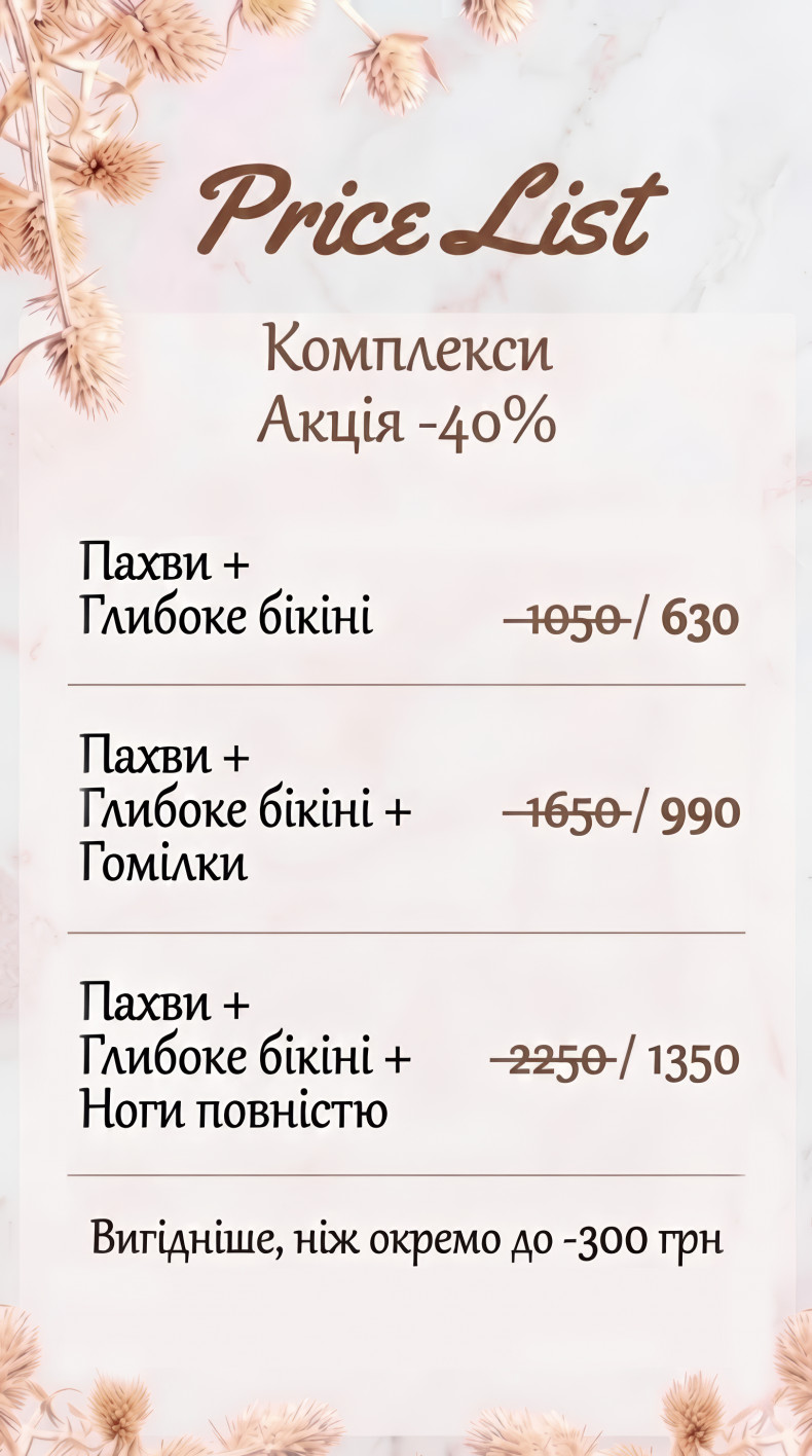 | Депиляция восковая | от 30 грн. / 15 мин. |