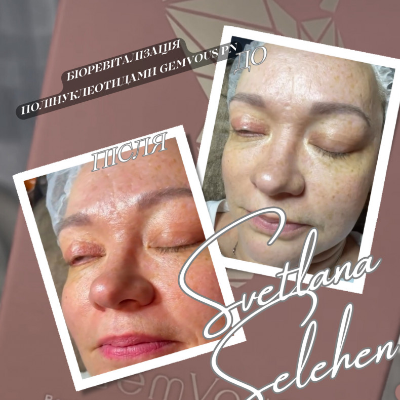 Ін’єкційна процедура для глибокого відновлення та зволоження шкіри, стимуляції колагену, еластину та гіалуронової тканини. Полінуклеотиди GemVous PN відновлюють структуру шкіри, зменшують дрібні зморшки та надають природний ліфтинг-ефект.