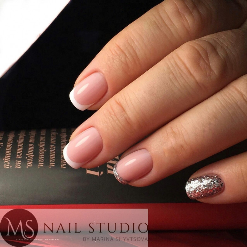 Коррекция нарощенных ногтей выкладной френч