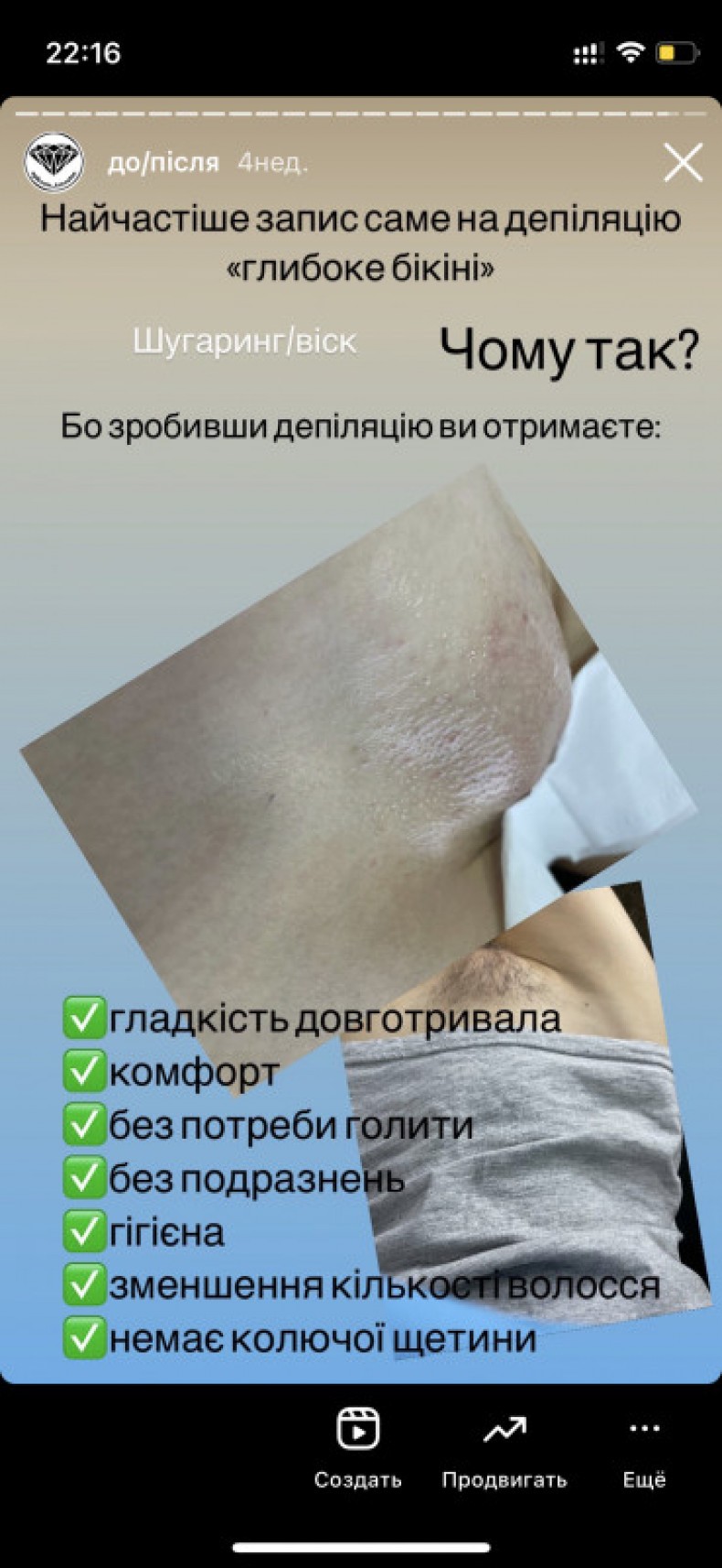 Майстер депіляції. Віск, цукрова паста (шугаринг). Видалення небажаного волосся на обличчі та тілі. Лікування врослого волосся. Працюю із жінками, чоловіками, підлітками, вагітними.