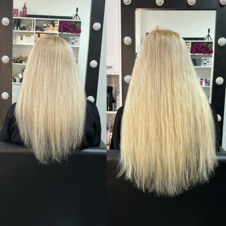 Італійська технологія нарощування волосся на капсули включає такі етапи: 1.Підготовка волосся: Миття і сушка натурального волосся. 2.Вибір матеріалів: Підбір натурального волосся, яке відповідає кольору та структурі клієнта. 3.Капсуляція: Використання кератинових капсул для прикріплення нарощеного волосся. 4.Нарощування: Прикріплення пасм до натурального волосся за допомогою нагрітих щипців. 5.Фінальна обробка: Підрівнювання та укладання волосся. Переваги: тривале носіння, природний вигляд, можливість різних укладок.