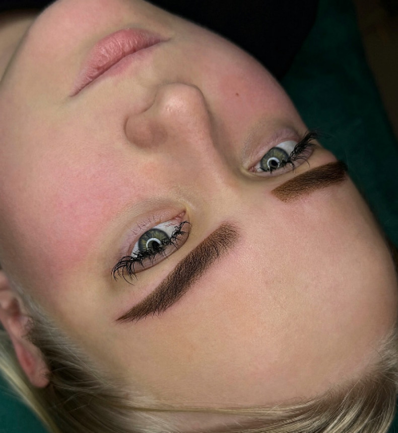 пиксельные брови, нюдовые губы, волосковый татуаж бровей, коррекция татуажа бровей, перманентный макияж глаз
