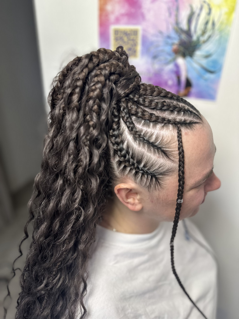 Заплести можна як прості так і фігурні брейди до низу і також у хвіст, це визначається за типом обличчя та станом власного волосся