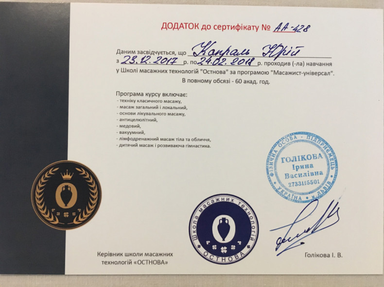 | Масаж тіла відновлюючий | 750 грн. / 60 мин. |