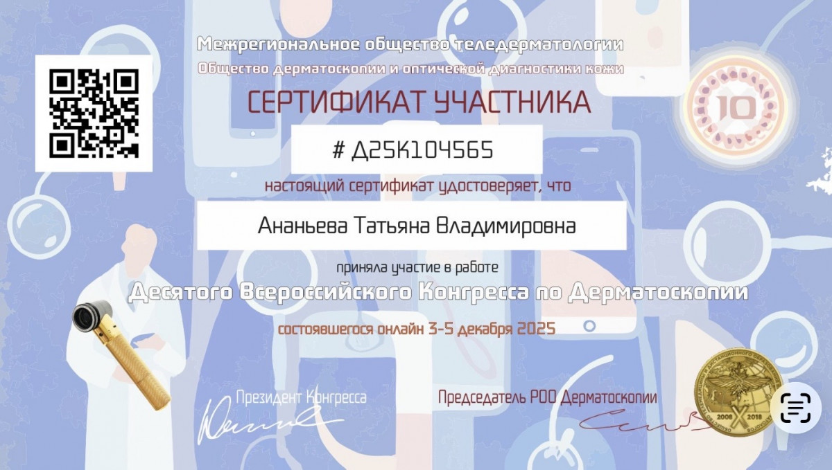 Дополнительные специализации: Косметолог, дерматолог косметолог, врач-косметолог, мастер депиляции, мастер шугаринга