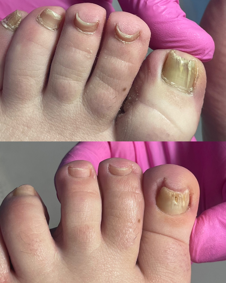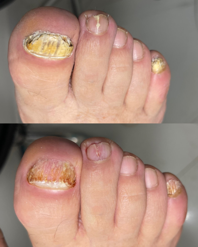 Комплексна обробка нігтів і шкіри стоп при грибкових ураженнях. Механічне очищення, зменшення уражених ділянок та підбір засобів для домашнього догляду.