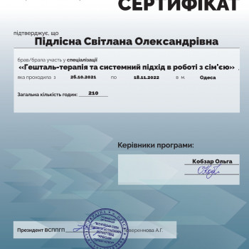 Основная специальность: Гештальт-терапевт
