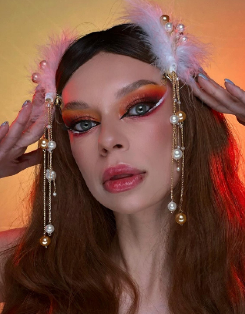 яркий макияж, коктейльный визаж, макияж со стрелками, смоки айс, макияж для нависшего века