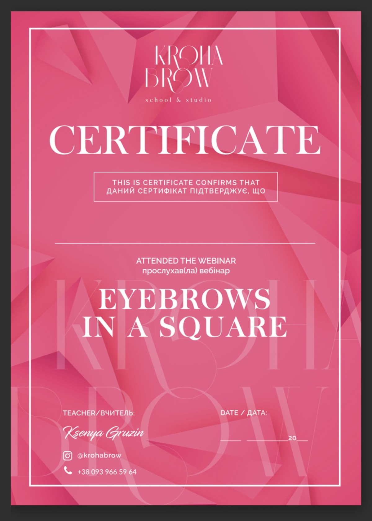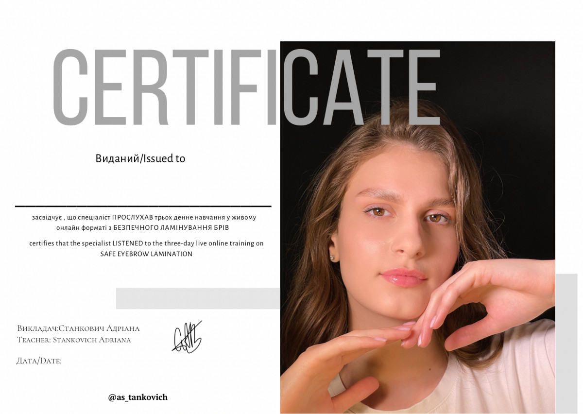 Працюю з різною складністю брів та вій. Є досвід роботи з перещипаними бровами, густими, жорсткими, довгими та завивающимися волосками. Кожний клієнт може отримати безкоштовну консультацію по своєму питанню щодо форми брів, їх стану та догляду за ними. Стосовно перманенту можете отримати консультацію на всі питання безкоштовно. В арсеналі є волоскова техніка