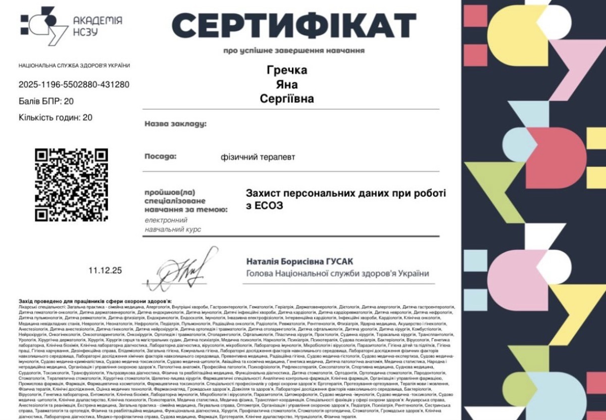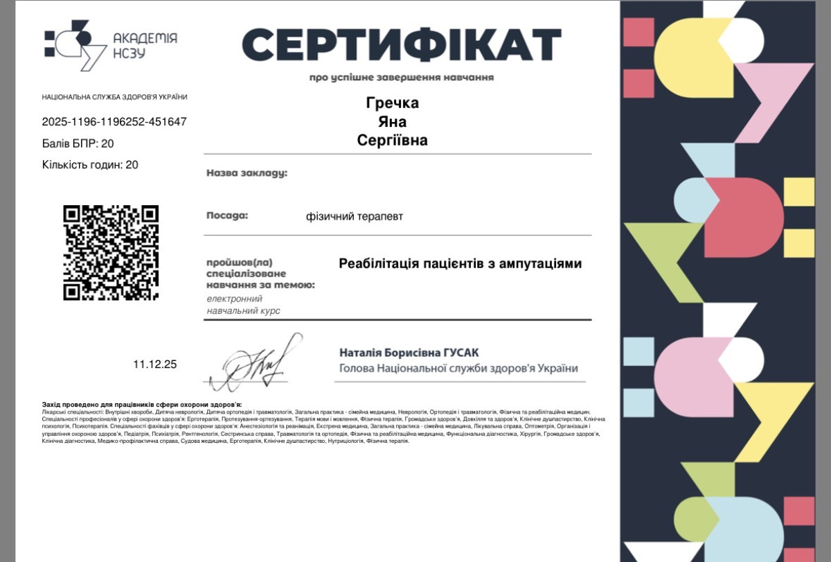 Дополнительные специализации: Реабілітолог