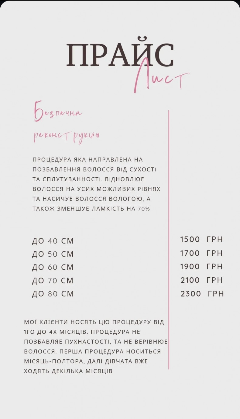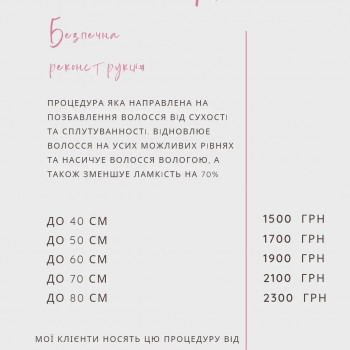 | Ботокс для волос | от 200 грн. / 1 ч. |
