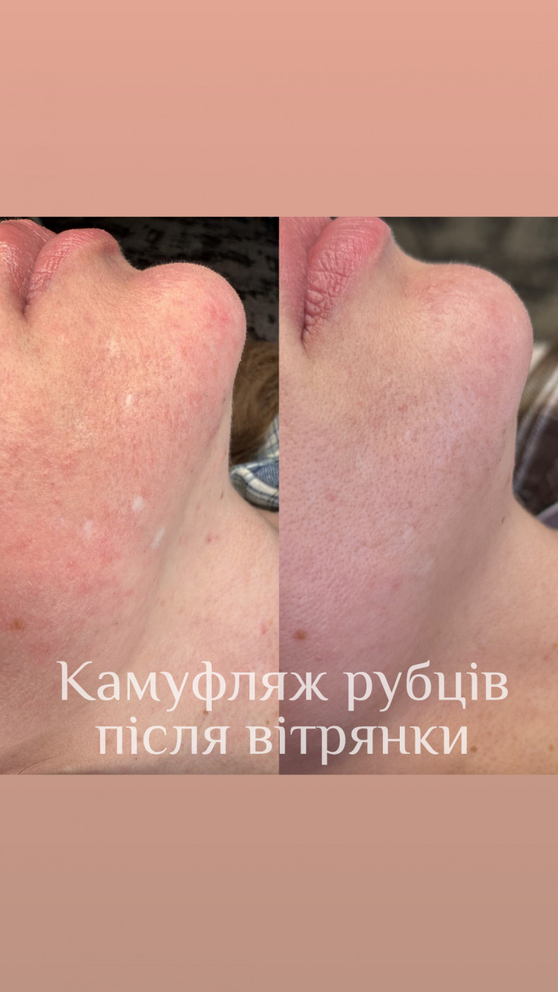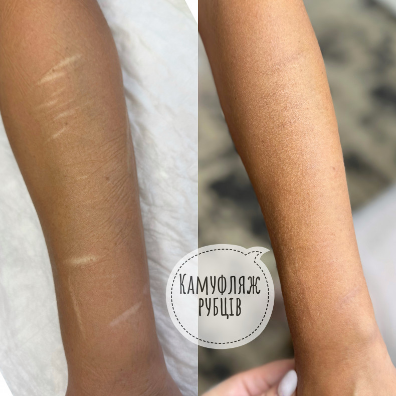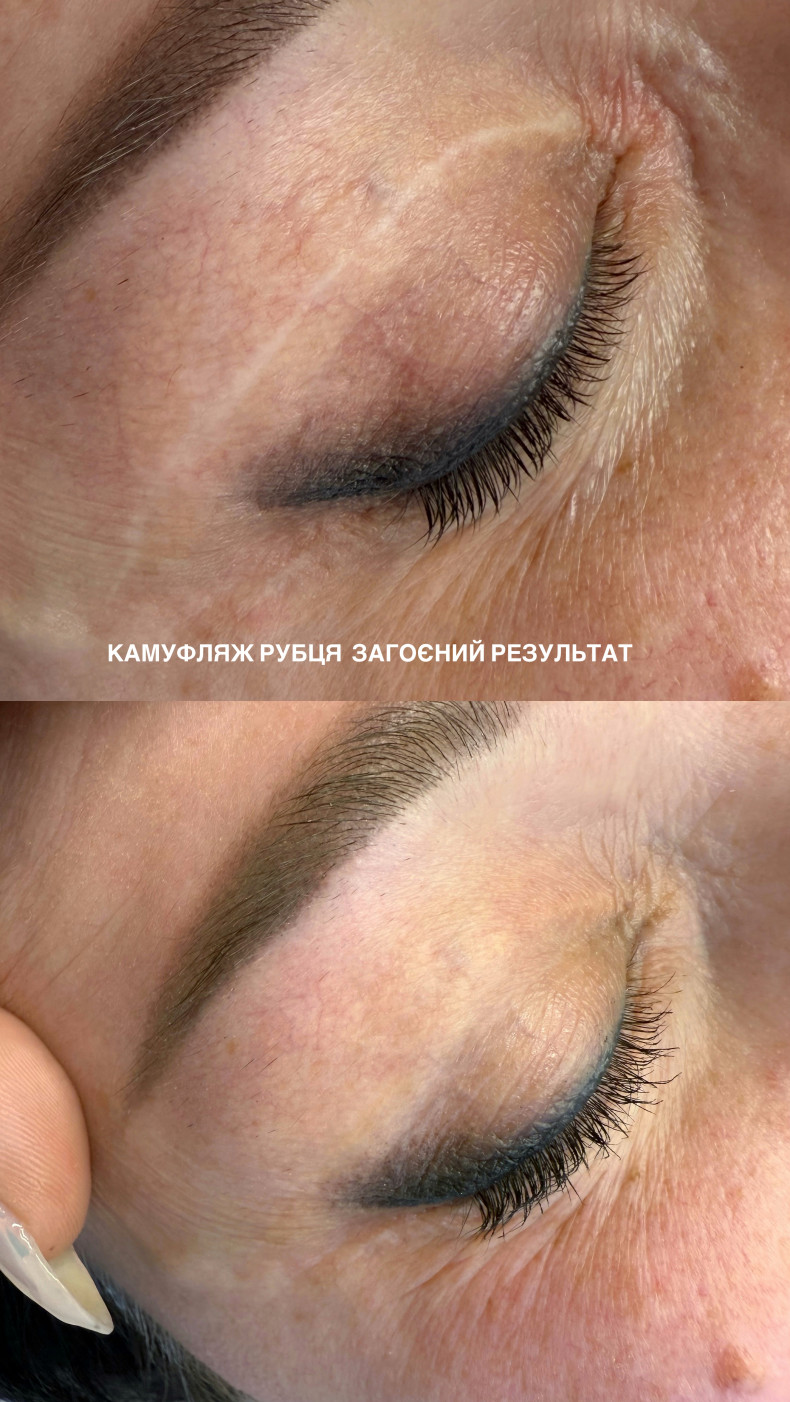Камуфляж шрамов или витилиго — это тонкая, ювелирная работа, которая выполняется по тому же принципу, что и татуировка. Если вашему шраму больше полутора лет, его можно закрасить пигментом, подобранным точно в тон вашей кожи. Я индивидуально смешиваю цвет, чтобы как можно точнее воспроизвести естественный оттенок вокруг шрама. Пигмент вбивается в поверхность шрама, как при татуаже. После заживления шрам постепенно “сливается” с окружающей кожей, становится менее заметным или практически невидимым. Особенно востребован камуфляж после: • блефаропластики, • ветряной оспы, • операций, • рубцов на лице и теле, • небольших шрамов на руках или ногах. Главное условие — чтобы шрам был гладким или почти не выпуклым. В таких случаях его можно эффективно замаскировать, сделав гораздо менее заметным.