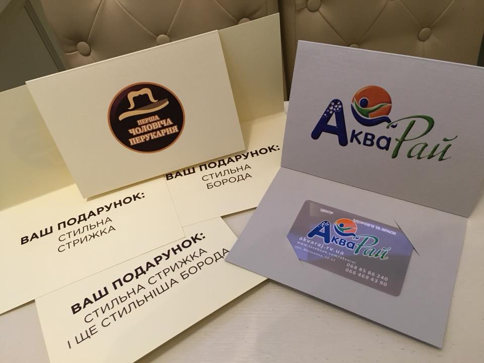"АкваРай" пропонує подарункові сертифікати на різні послуги та доглядові процедури, що є в нашому прайсі (відвідання салону краси, чоловічої перукарні та басейну). Такий формат подарунка доречний до будь-якого свята!