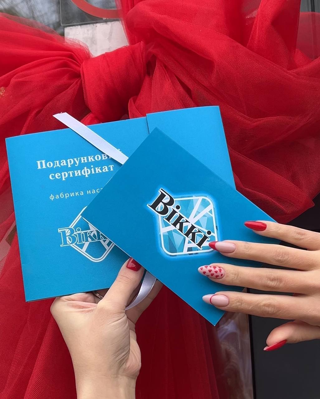 Подарунковий Подарунковий сертифікат від студії манікюру “ВІККІ” – це турбота про красу та комфорт в одному подарунку! ? У сертифікаті можна вказати будь-яку суму або обрати послугу: - Манікюр/педикюр (гігієнічний, японський, з покриттям), - Комбо-послуги: манікюр та педикюр одночасно у 4 руки, або манікюр, педикюр плюс оформлення брів у 6 рук, виконуються за 2 години, - Ламінування брів та вій, - Оформлення й корекція брів. Придбати сертифікат можна у нашій студії за адресою вул. Мазепи, 3, або замовити тел.