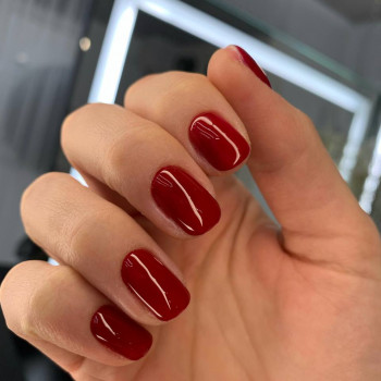 Винный цвет в исполнении с матовым наделяет руки особой мягкостью, благородством и теплотой. И такого рода топ хорошо сочетается с разными видами дизайна. В частности: