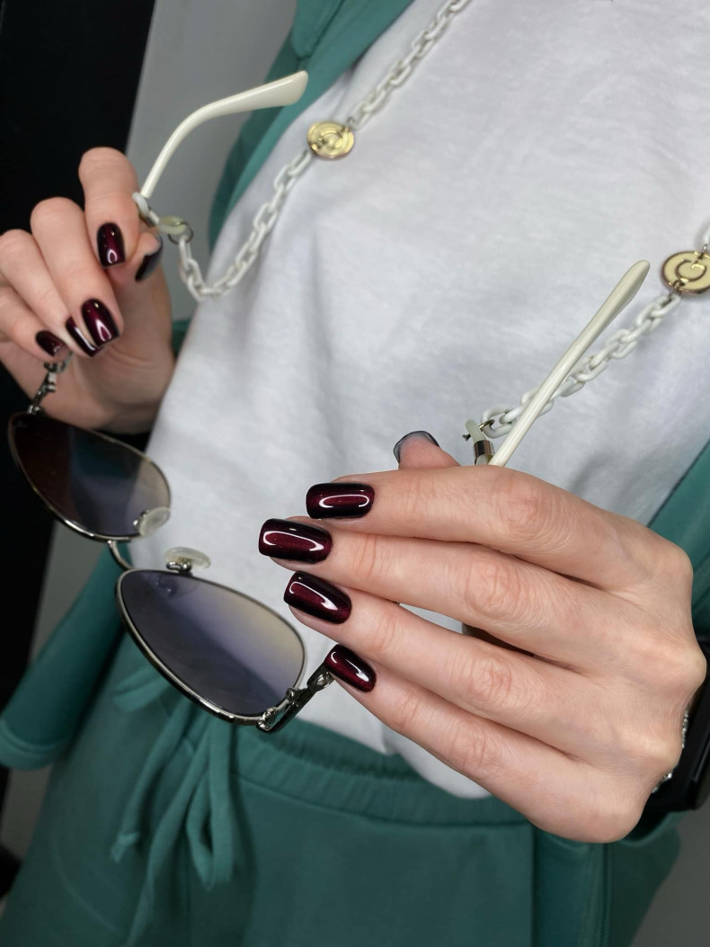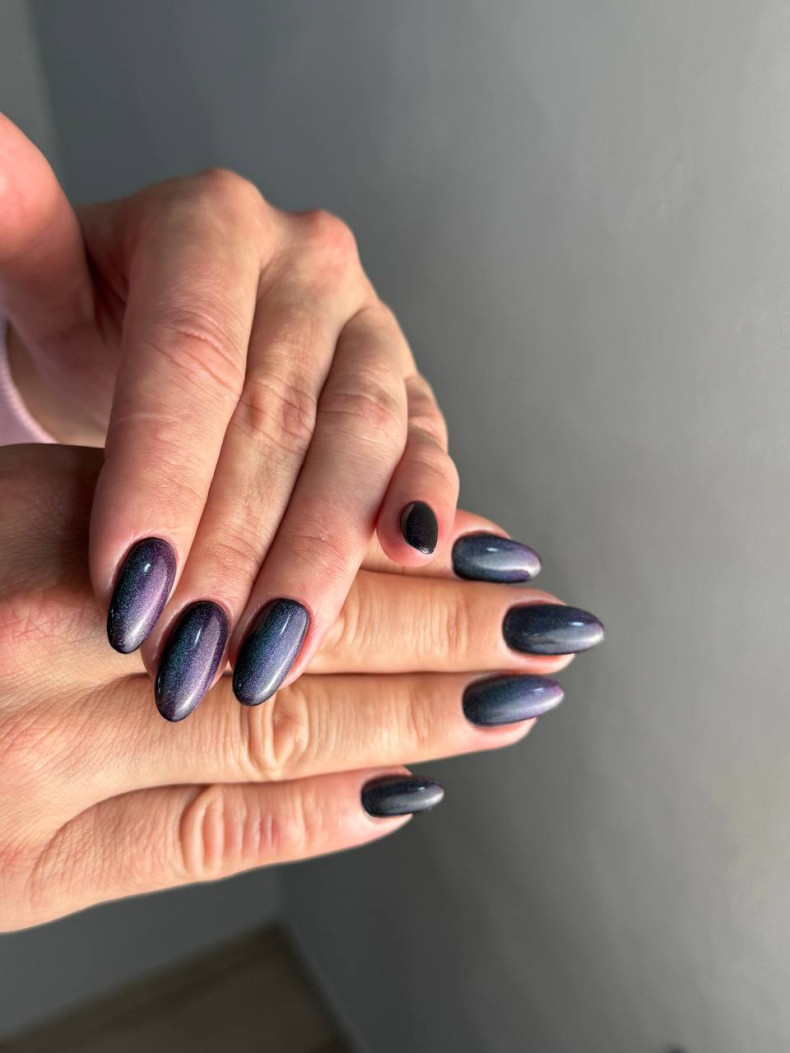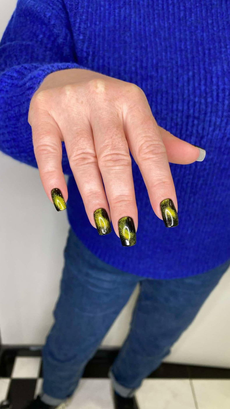 Маникюр «кошачий глаз» одинаково красиво смотрится в любом возрасте и на коротких, и на длинных ногтях разной формы. Он подходит как для повседневной носки, так и для выхода в свет.