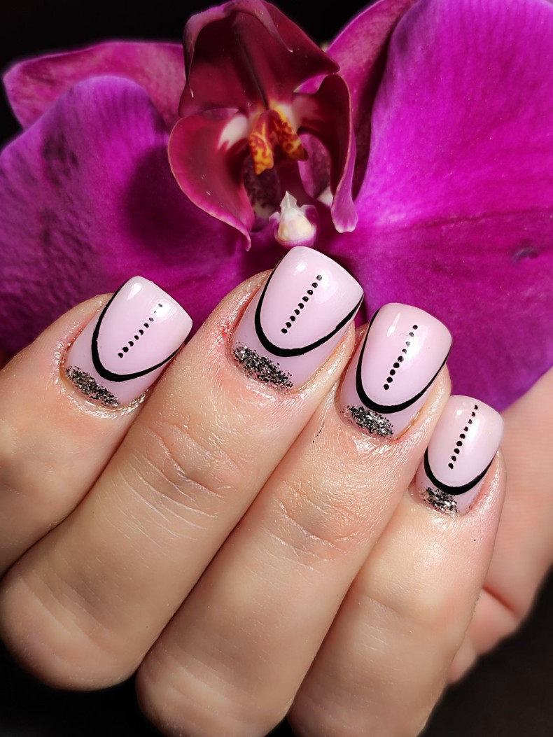Квадратные ногти с немного закругленными краями считаются лучшим решением с эстетической точки зрения для нанесения геометрических узоров. Это могут быть как обычные полосы, кривые линии и точки, так и более сложные фигуры. Правильно подобранная геометрия позволит сделать короткие ноготки визуально длиннее.