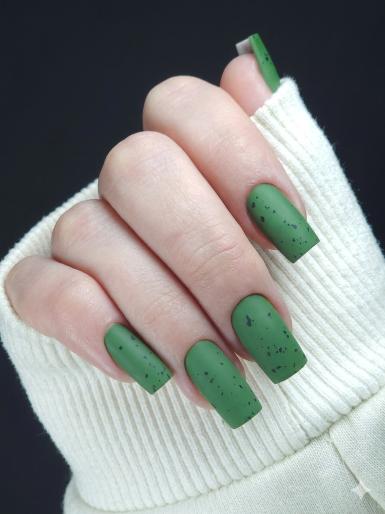 Любительницам оригинального образа подходят квадратные ногти с зеленым маникюром. Гармоничным станет матовый вариант, который выглядит дорого и аристократично.