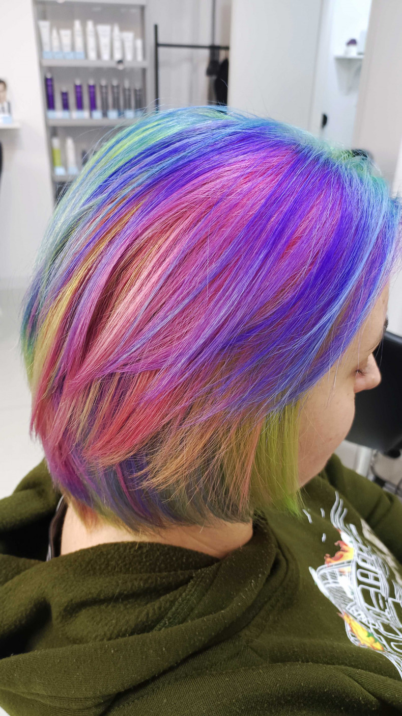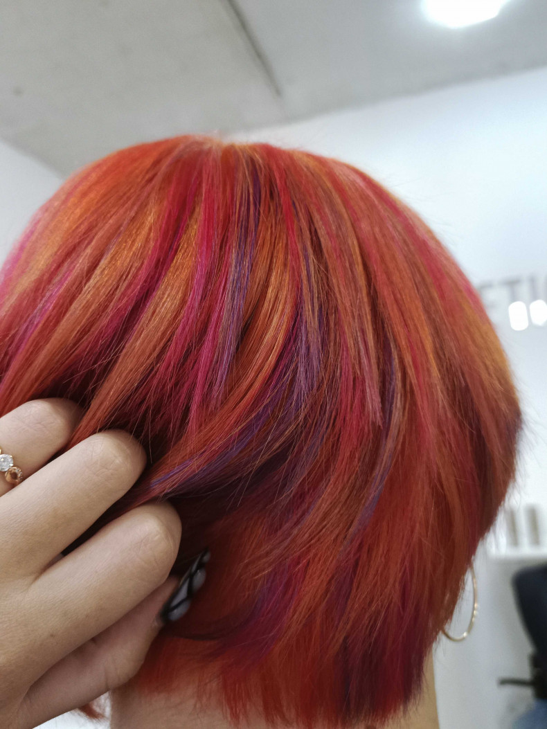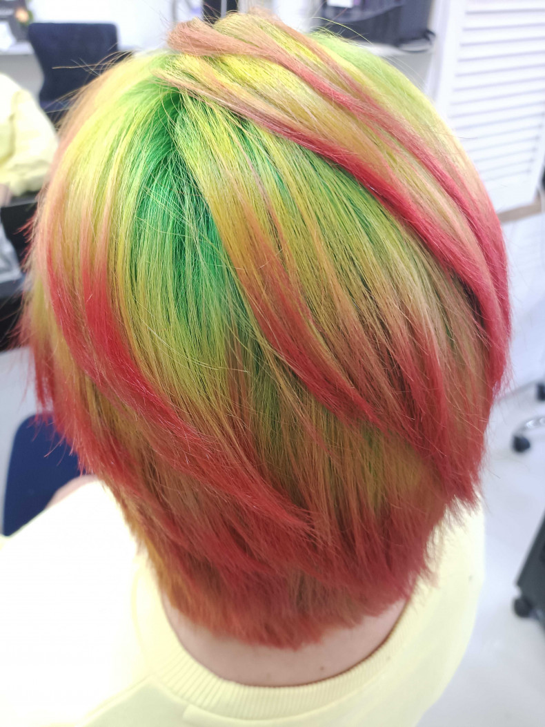 Обезбарвлення волося і подальше яскраве фарбування у техніці.