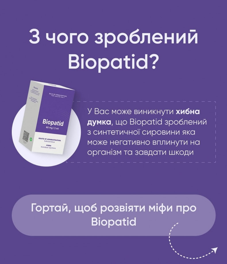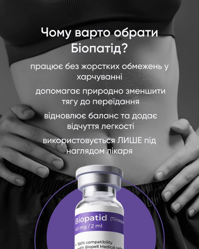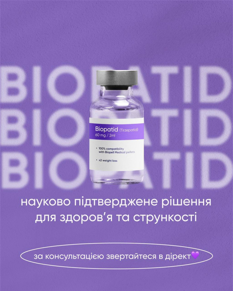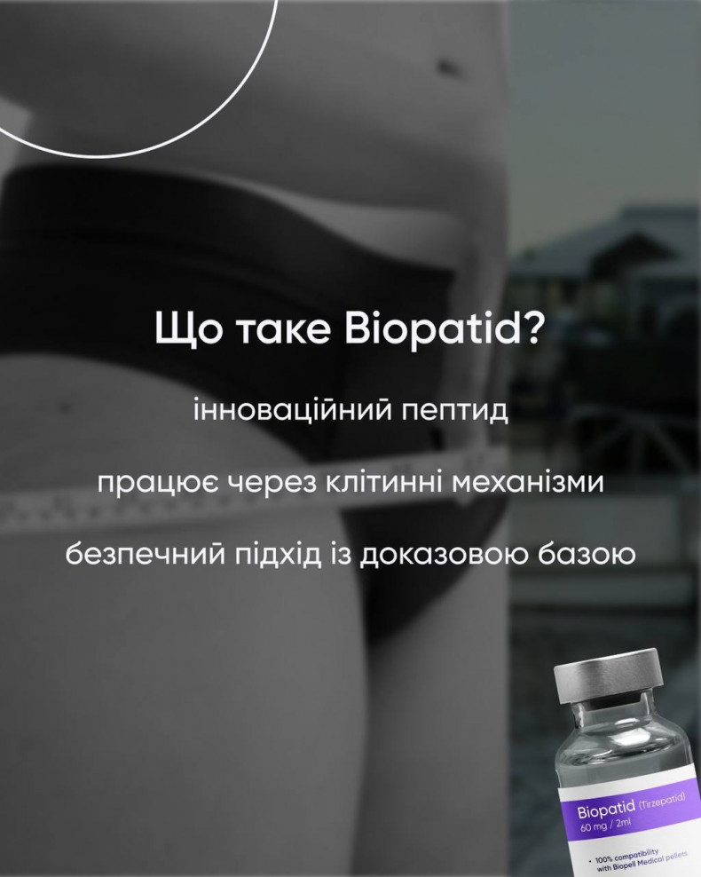 Інʼєкції BIOPATID, Retatrutide для схуднення . СХУДНЕННЯ без стресу та зривів • повний супровід спеціаліста • доступна ціна • план харчування • комплекс послуг для покращення стану шкіри BIOPATID науково підтверджене рішення для здоровʼя та стрункості -Прискорює спалювання жиру -Зберігає мʼязову масу -Контролює апетит та рівень цукру -Не має побічних ефектів (за правильною схемою)