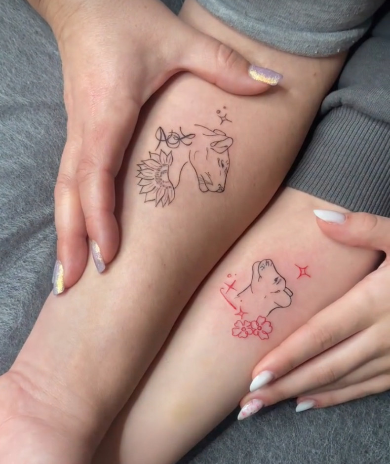 Очень часто встречаются парные татуировки со львом. Они в основном выполняются в монохроме и наносятся на запястья.