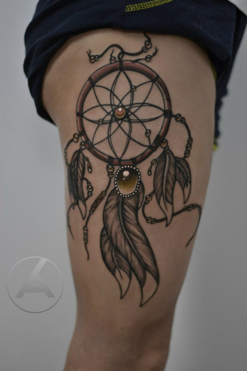Ловец снов – не просто красивая татуировка, но и амулет. Его изображение чаще украшает женские тела, однако востребовано и у представителей сильной половины.