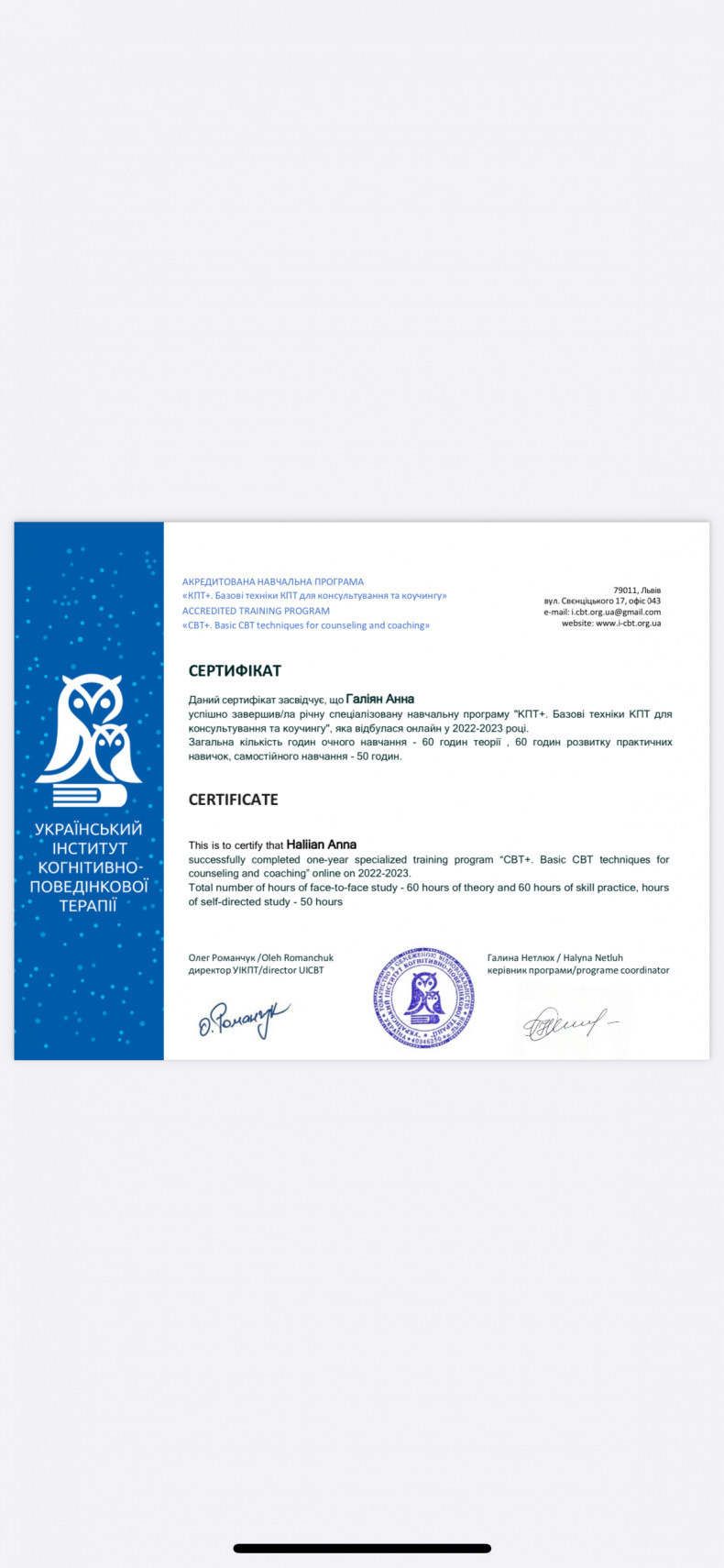 | ✅ Психолог Tetiana Bilinska | 1200 грн |