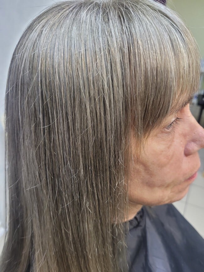 Шиття сивини — це ідеальний компроміс для тих, хто хоче виглядати природно, але доглянуто. Цей метод допомагає згладити контраст між сивим і пігментованим волоссям, створюючи ефект м'якого переливу відтінків. При правильному догляді результат зберігається надовго, а волосся залишається здоровим і блискучим.