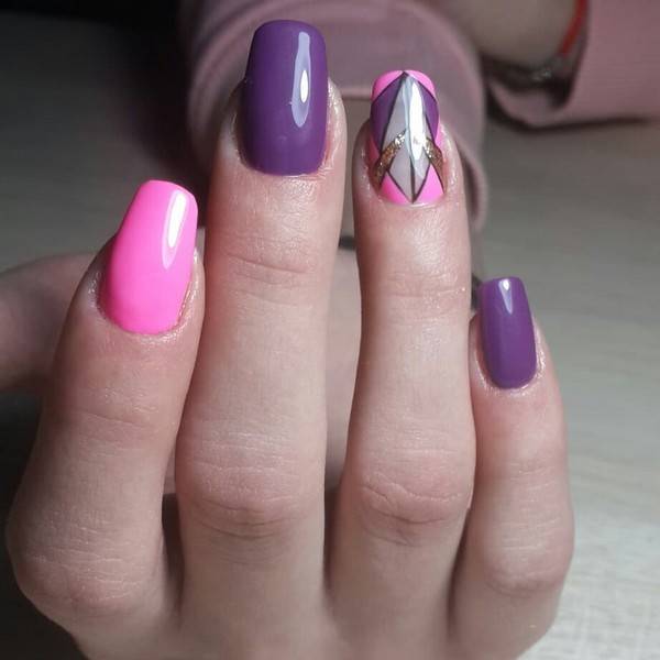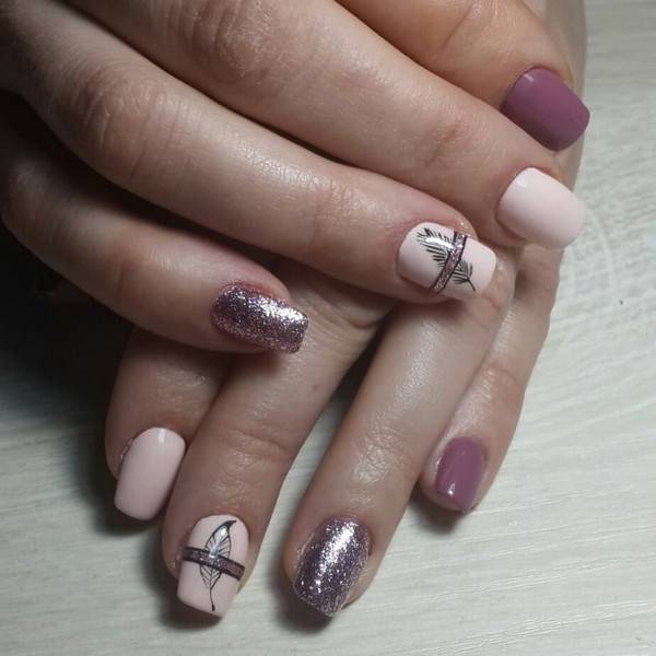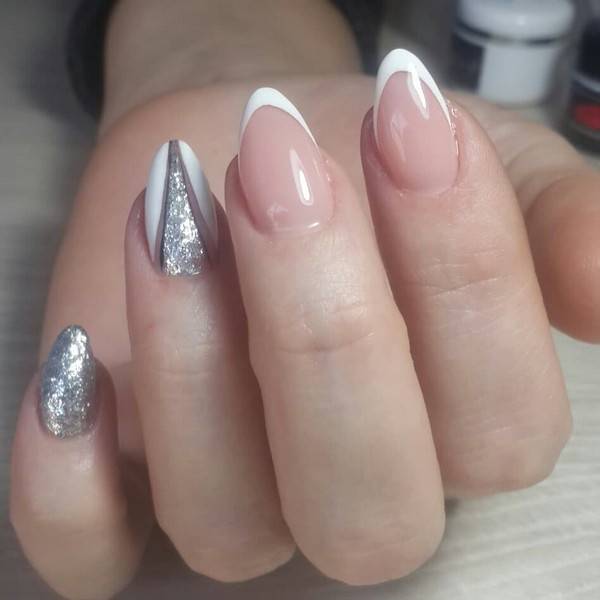 новорічний манікюр, білий манікюр, лавандовий манікюр, манікюр на гострі нігті, різнокольоровий манікюр