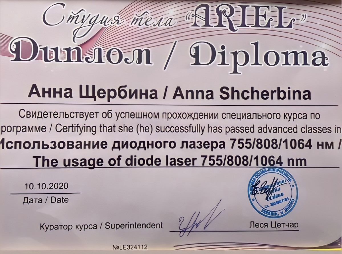 Додаткові спеціалізації: Майстер епіляції, майстер лазерної епіляції, електролог
